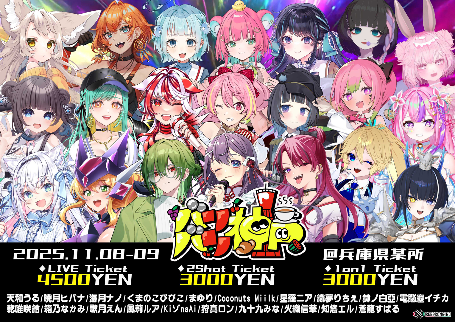 兵庫県の推し活ができるカフェにて行われる、ライブ、2Shot、1on1全てが楽しめるイベント『バリバリ神戸vol.3』に、電脳塵イチカの出演が決定しました!